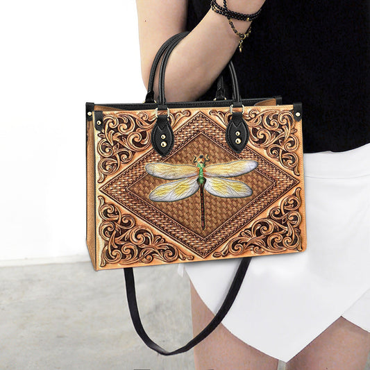 Dragonfly Flowers Lover Leather Bag, Gifts Dragonfly Lovers, Women's Pu Leather Bag