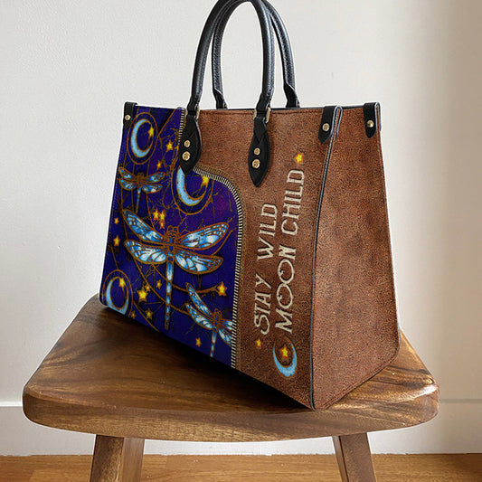 Dragonfly Hippie Pattern Leather Bag, Gifts Dragonfly Lovers, Women's Pu Leather Bag