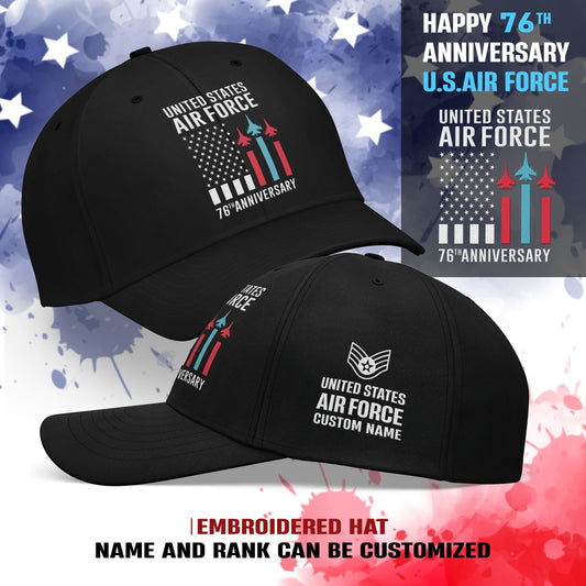 Us Air Force Cap, Customized Happy 76Th Anniversary US Air Force Embroidered Cap, Embroidered Dad Hat