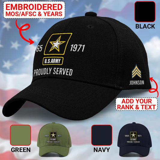 Us Army Veteran Caps, Customized US Army Logo Proudly Served Embroidered Cap, Embroidered Dad Hat