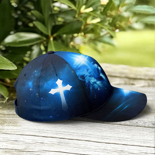 The Lion Cross Light Way Maker Miracle Worker Promise Keeper Classic All Over Print Baseball Cap, God Cap, Gift Ideas For Male