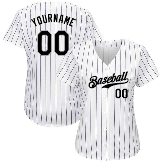 Cool Baseball Jersey, Custom White Purple Pinstripe Black Gray Authentic Baseball Jersey, Best Baseball Jerseys