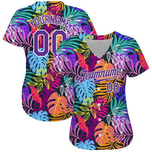 Cool Baseball Jersey, Custom White Purple 3D Pattern Design Tropical Monstera Authentic Baseball Jersey, Best Baseball Jerseys