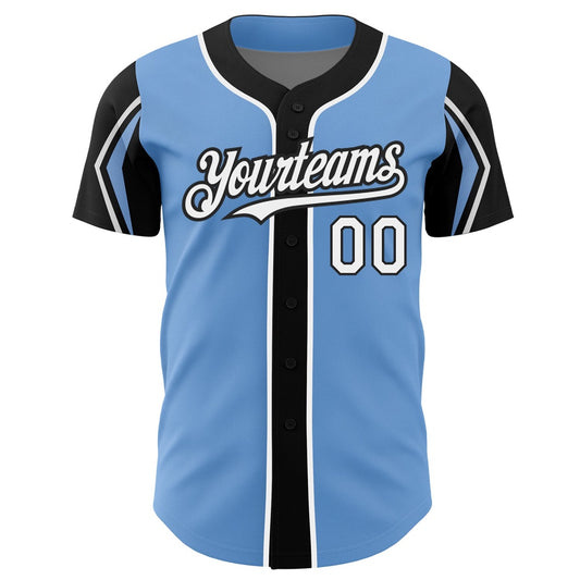 American Baseball Jersey, Custom Light Blue White Black 3 Colors Arm Shapes Authentic Baseball Jersey, Baseball Jersey Name