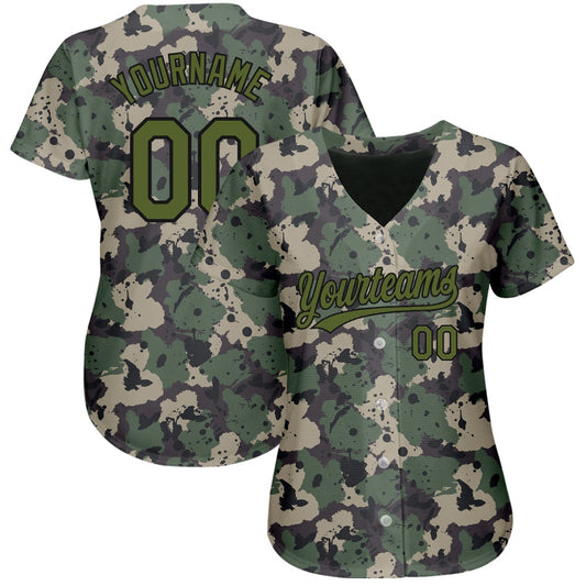 Team Jerseys Baseball, Custom Camo Olive Black Authentic Salute To Service Baseball Jersey, Logo Baseball Jersey