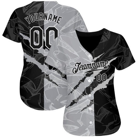 Team Jerseys Baseball, Custom Graffiti Pattern Black Gray 3D Scratch Authentic Baseball Jersey, Logo Baseball Jersey