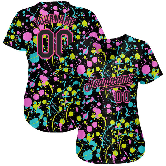 Team Jerseys Baseball, Custom Graffiti Pattern Black Pink 3D Neon Splatter Authentic Baseball Jersey, Logo Baseball Jersey