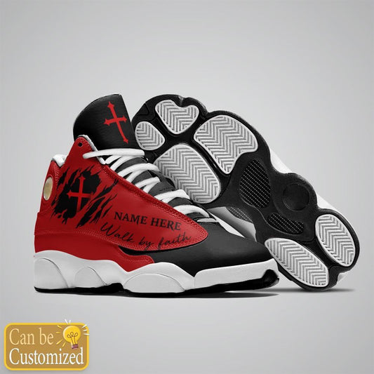 Black Red Walk By Faith Jesus Custom Name Jd13 Shoes For Man And Women, Christian Basketball Shoes, Gifts For Christian, God Shoes