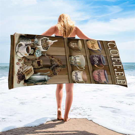 Coffee Bar, Cup Of Coffee, Christ Offer Forgiveness For Everyone Everywhere Beach Towel, Christian Beach Towel, Christian Gift, Gift For Women