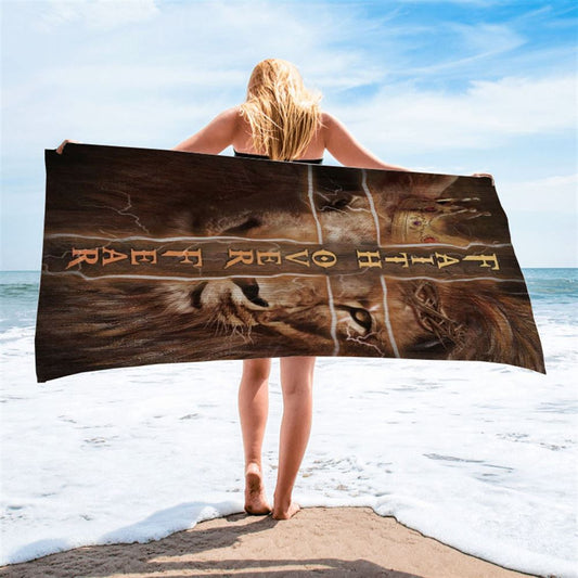 Golden Crown, Lion King, Cross, Faith Over Fear Beach Towel, Christian Beach Towel, Christian Gift, Gift For Women