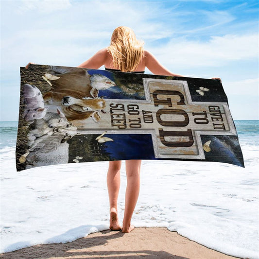 Farm Cattle, Night Sleep, Star Sky, Give It To God And Go To Sleep Beach Towel, Christian Beach Towel, Christian Gift, Gift For Women
