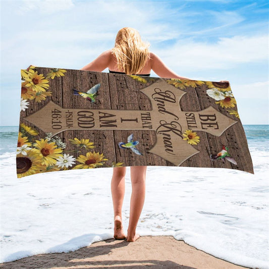 Beautiful Cross Hummingbird Be Still And Know That I Am God Beach Towel, Christian Beach Towel, Christian Gift, Gift For Women