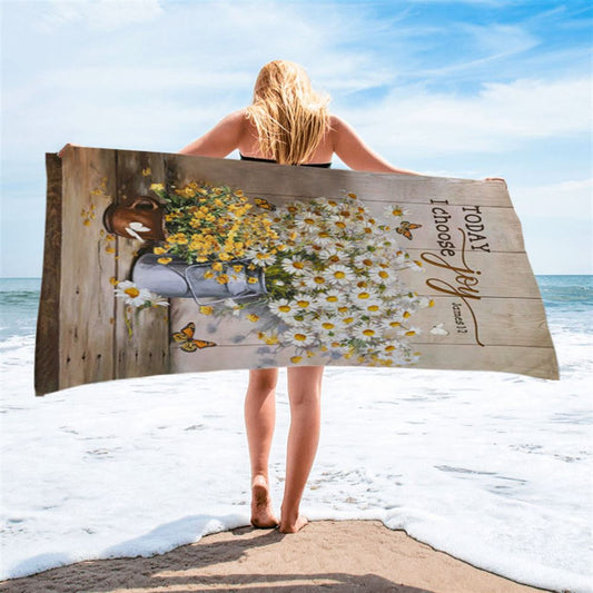 Today I Choose Joy Daisy Flower Butterfly Beach Towel - Bible Verse Beach Towel - Inspirational Art - Christian Beach Towel