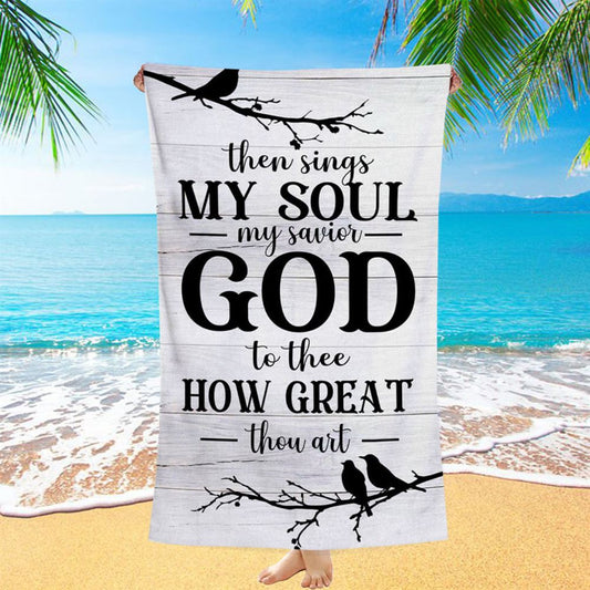 Then Sings My Soul My Savior God To Thee Bird Beach Towel - Bible Verse Beach Towel - Scripture Beach Towel