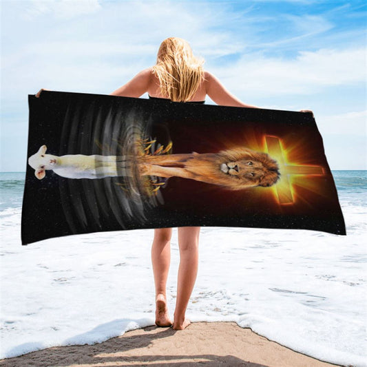 The Lion King Jesus Cross Beach Towel - Lion Beach Towel - Christian Inspirational Beach Towel