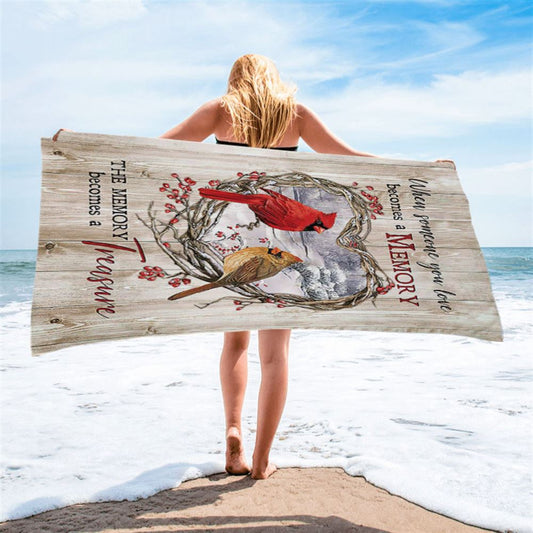 The Memory Becomes A Treasure Heart Of Thorn Red Cardinal Beach Towel - Christian Beach Towel - Religious Beach Towel