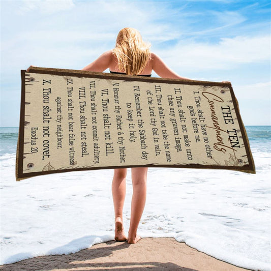Ten Commandments Beach Towel - Christian Beach Towel - Christian Gift