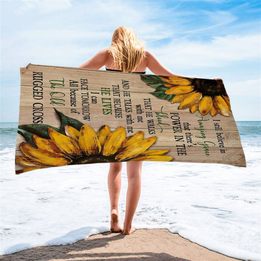 Sunflower I Still Believe In Amazing Grace Beach Towel - Christian Art - Bible Verse Beach Towel - Religious Beach Towel