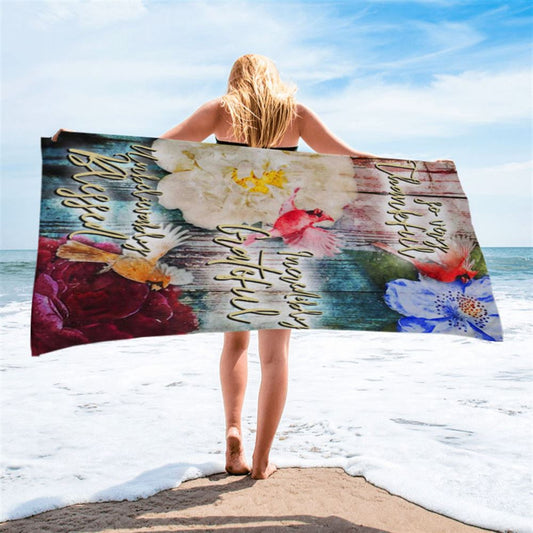 So Very Thankful Incredibly Grateful Unbelievably Blessed Cardinal Bird Beach Towel - Scripture Beach Towel