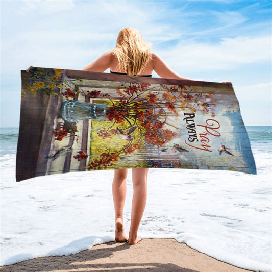 Pray Always Baby Orange Flower Autumn Hummingbird Beach Towel - Christian Beach Towel - Bible Verse Beach Towel
