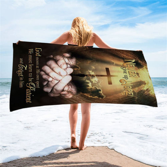 Never Give Up Hope God Moves At His Own Speed Beach Towel - Inspirational Beach Towel - Christian Beach Towel