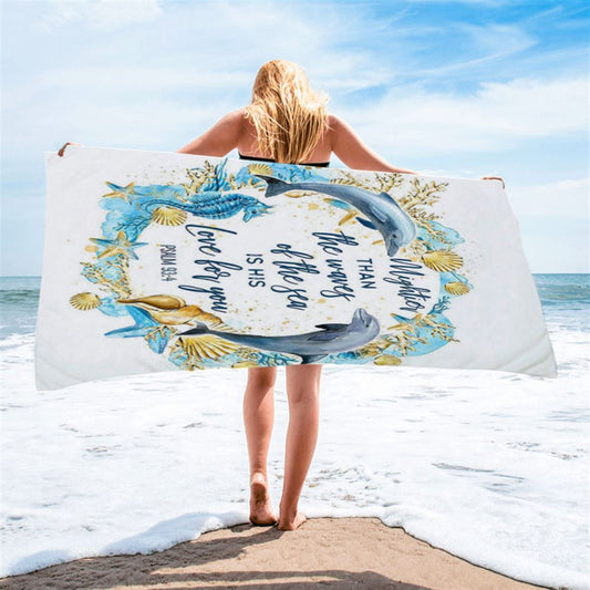 Ocean Dolphins Mightier Than The Waves Psalm 93 4 Beach Towel - Christian Beach Towel Decor