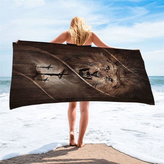 Cross Lion Of Judah Beach Towel - Christian Beach Towel - Bible Verse Beach Towel