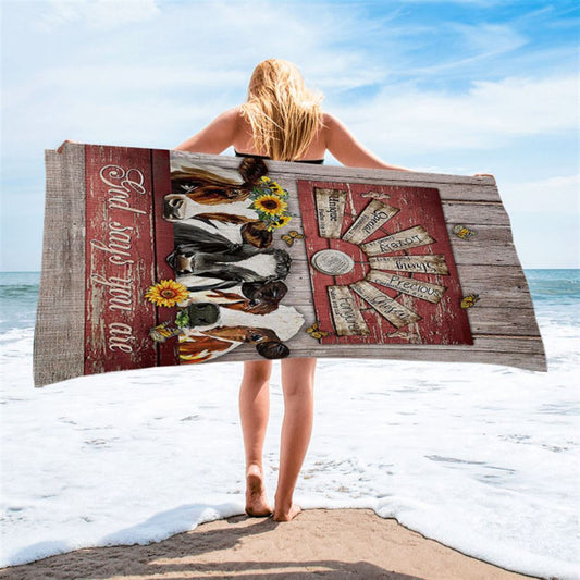 Dairy Cow Sunflower Wreath Windmill Beach Towel- God Says You Are Beach Towel - Christian Beach Towel