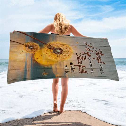 Dandelion Accept What Let Go Have Faith Beach Towel - Bible Verse Beach Towel - Christian Inspirational Beach Towel
