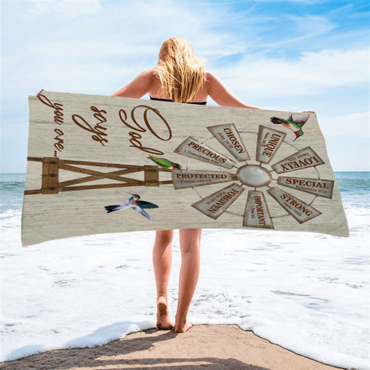 Christian Farmhouse Windmill God Says You Are Beach Towel - Bible Verse Beach Towel - Scripture Beach Towel