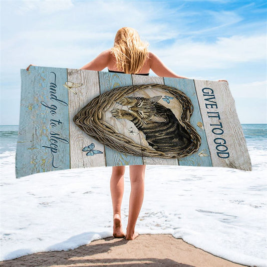 Blue Butterfly Cat Give It To God And Go To Sleep Beach Towel - Christian Beach Towel - Gift For Cat Lover