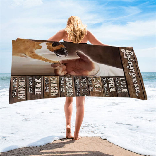 Boxer Boxer Jesus Hand God Says You Are Beach Towel - Christian Beach Towel - Religious Beach Towel