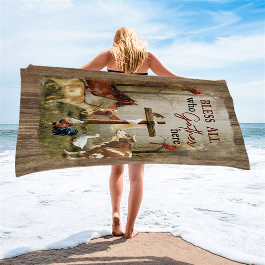Bless All Who Gather Here Beach Towel - Animal Daisy Field Rooster Beach Towel - Christian Beach Towel - Bible Verse Beach Towel