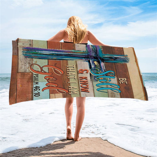 Be Still And Know That I Am God Wooden Cross Beach Towel - Bible Verse Beach Towel - Scripture Beach Towel