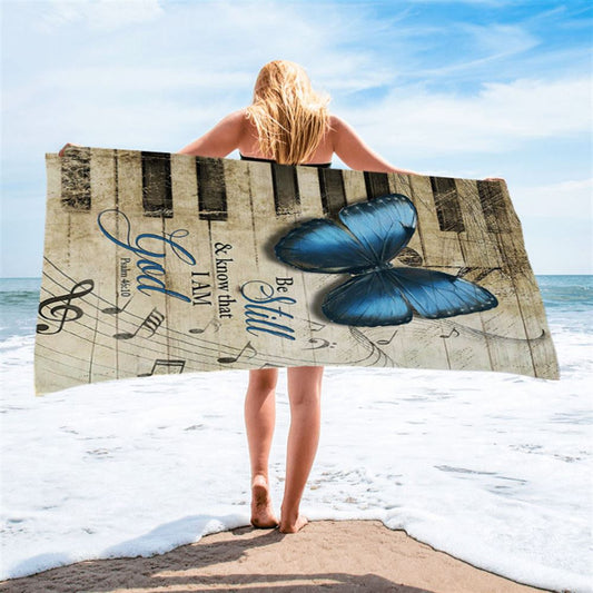Be Still I Am God Blue Butterfly Piano Keys Beach Towel - Bible Verse Beach Towel - Inspirational Art - Christian Beach Towel