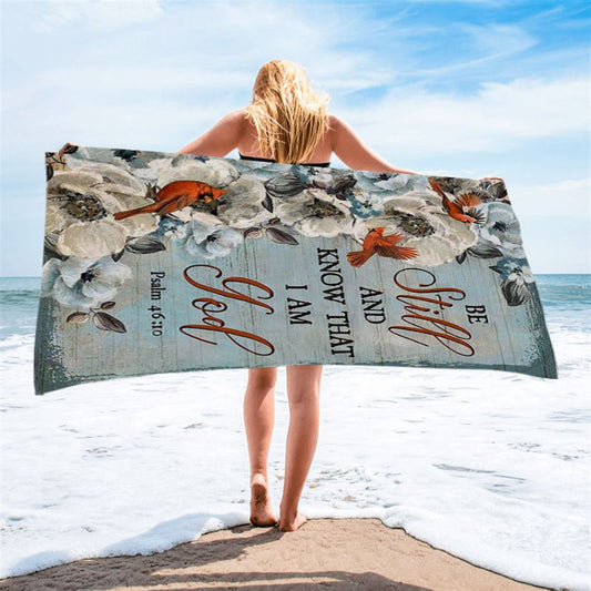 Be Still Cardinals Flowers Christian Beach Towel - Bible Verse Beach Towel - Scripture Beach Towel