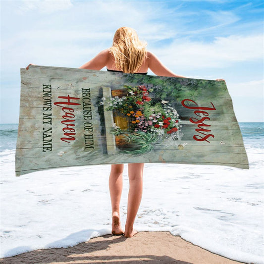 Baby Flower Butterfly Because Of Him Heaven Knows My Name Beach Towel - Christian Beach Towel