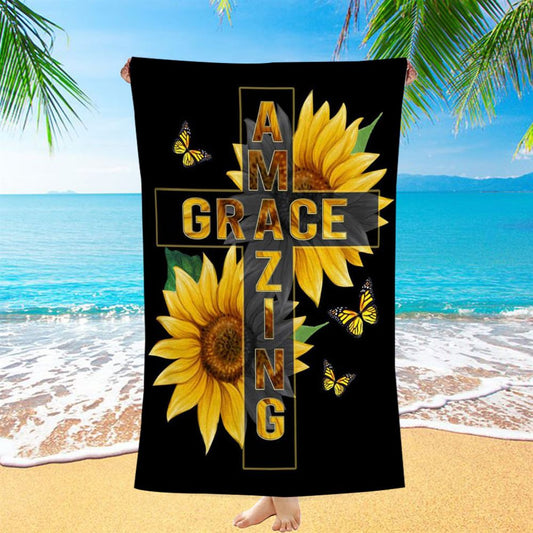 Amazing Grace Sunflower Beach Towel - Bible Verse Beach Towel - Scripture Beach Towel