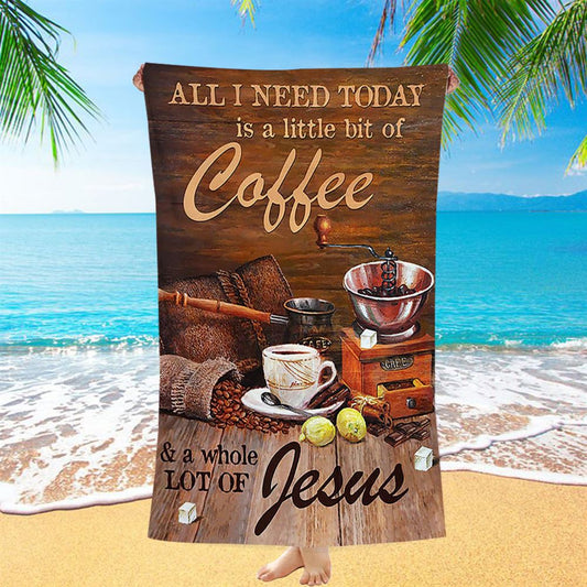 All I Need Today Is A Little Bit Of Coffee And A Whole A Lot Of Jesus Beach Towel - Christian Beach Towel - Religious Beach Towel