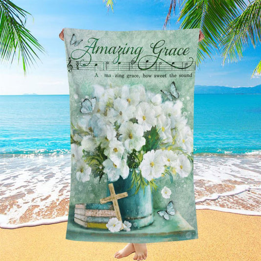 Amazing Grace How Sweet The Sound Personalized Beach Towel - Christian Beach Towel - Bible Verse Gift For Women Of God