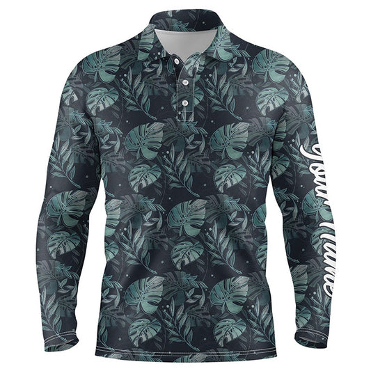 Golf Polo shirts, Mens Golf Polo Shirts With Monstera Leaves Tropical Custom Name Golf Shirt