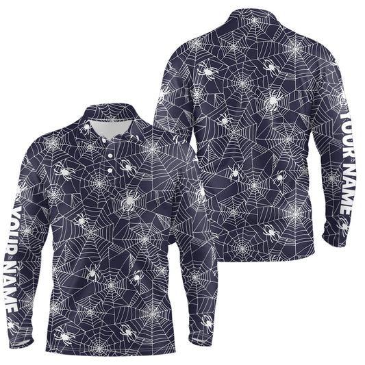 Golf Polo shirts, Spooky White Spiders On Cobweb Navy Halloween Golf Polo Shirts Custom Golf Gifts For Men