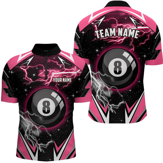 Billiard Polo Shirts, Pink 8 Ball Pool Billiard Jersey Custom Polo Shirts, Team League Billiard Valentine Sport Shirt, Billiards Team Shirts
