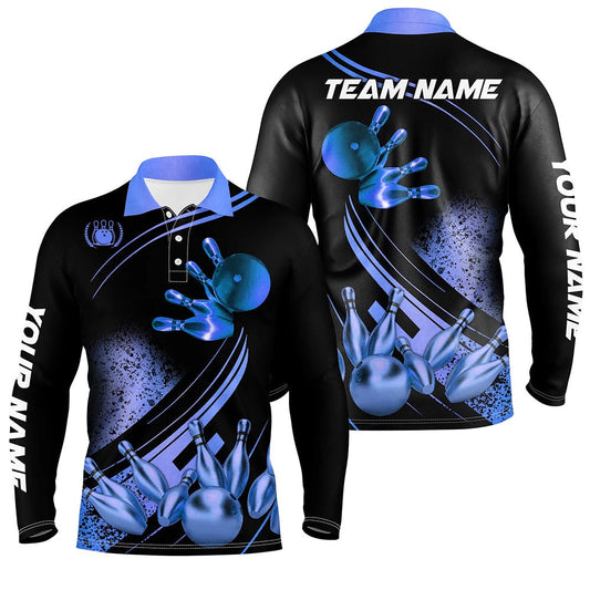 Custom Bowling Polo Shirts, Black And Blue Mens Bowling Shirts Custom Bowling Apparel Team Bowling Jerseys