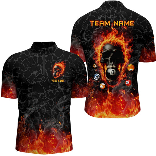 Billiard Polo Shirts, Billiards 8 Ball Flame Skull Fire Custom Pool Shirts, Unique Team League Billiard Jerseys, Billiards Team Shirts
