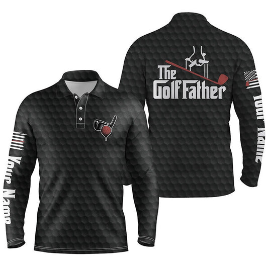 Golf Polo Shirts, Black Golf Ball Pattern Mens Golf Polos Shirts Custom Name The Golf Father, Best Golf Gifts For Men, Custom Golf Shirts