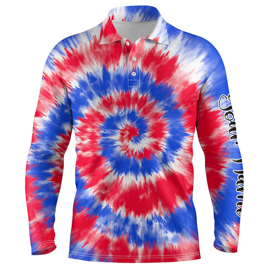Golf Polo shirts, Mens Golf Polo Shirt Red And Blue Tie Dye Background Custom Name Golf Shirt, Golfing Gift