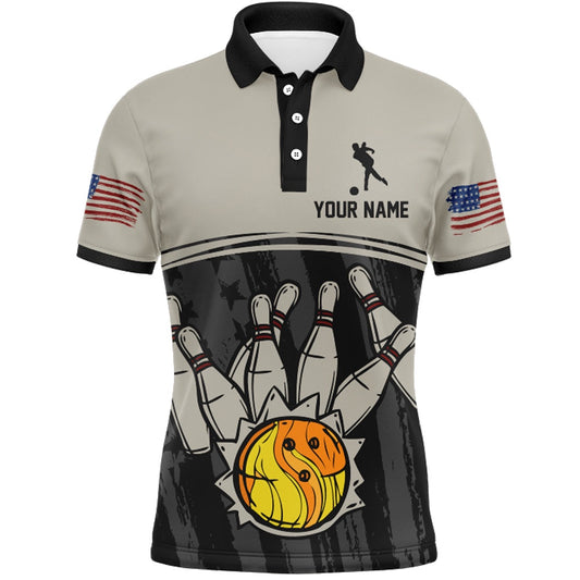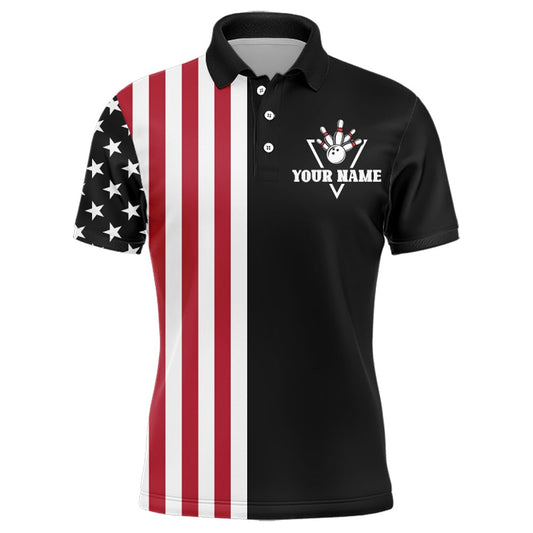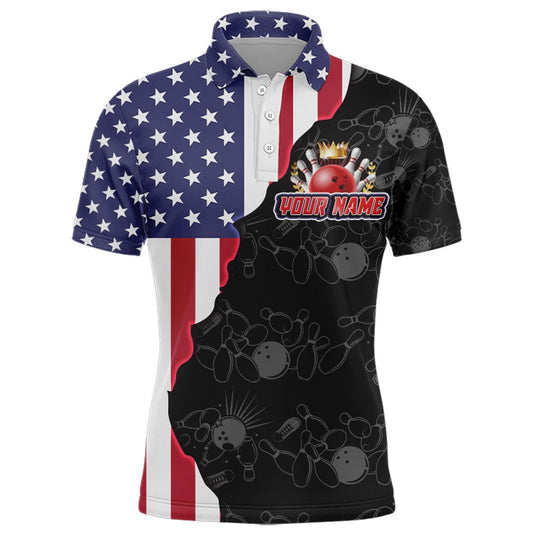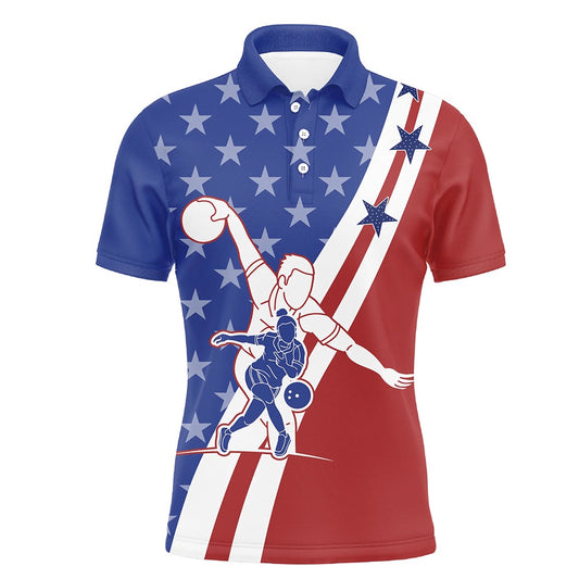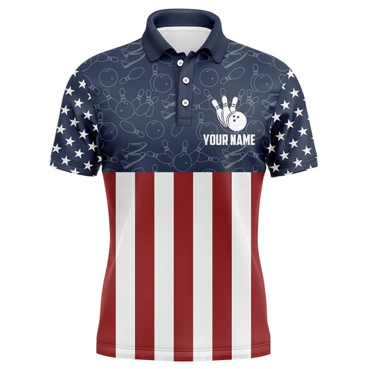Custom Bowling Polo Shirts, American Bowling Jersey Men Patriotic Bowling Team Shirt Custom Bowling Polo Shirt