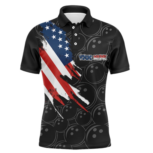 Custom Bowling Polo Shirts, American Flag Bowling Jersey For Men Patriotic Bowling Shirt Team League Bowling Polo Shirt