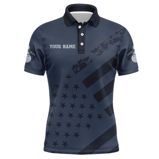 Custom Bowling Polo Shirts, American Flag Bowling Polo Shirt For Men Custom Bowling Team Jersey Navy Bowling Shirt